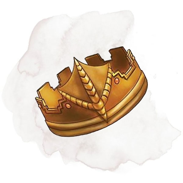 A small golden crown with a webbed foot of a water fowl emblazoned on its front amidst several small jewels. The crown is sized for the head of a duck making it much too small for you to equip onto your average creature sized cranium. It can instead be worn as a bracelet.
